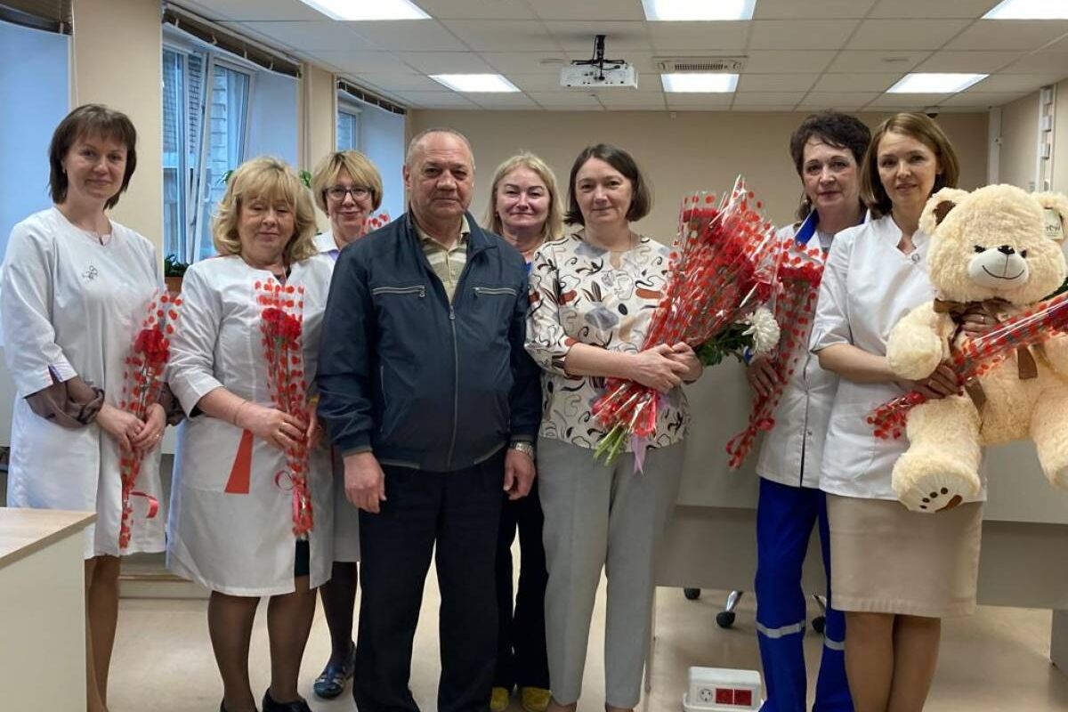 Главврачу Наталье Алонцевой и сотрудникам БСМП были вручены цветы и подарки.